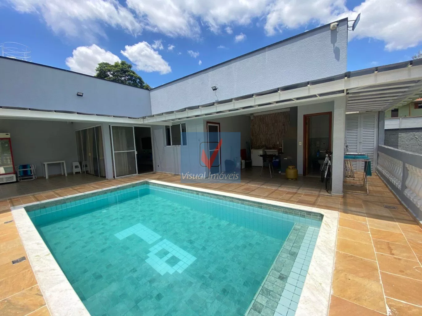 >150 m² construído >3 dormitórios sendo 01 suite;>Sala, Cozinha;>1 banheiro social;>Espaço churrasqueira >1 banheiro social área externa>Piscina >Garagem